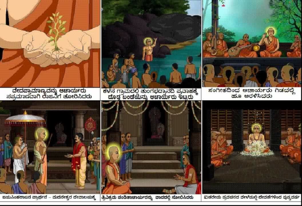 Going back to My childhood days, I remember watching the Fabulous animation On Sri Madhwaacharyaru. Such a wonderful Presentation gives everyone a clarity on the Life of Madhwaacharyaru. I have attached the youtube link of complete movie and i gave english translations of kannada scripts in the following pictures